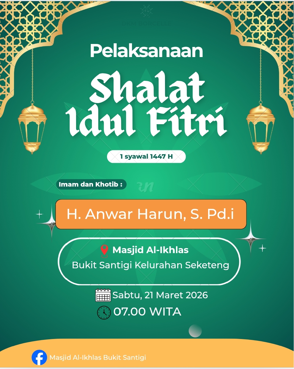 Pelaksanaan Shalat iedul fitri 1 syawal 1447 H